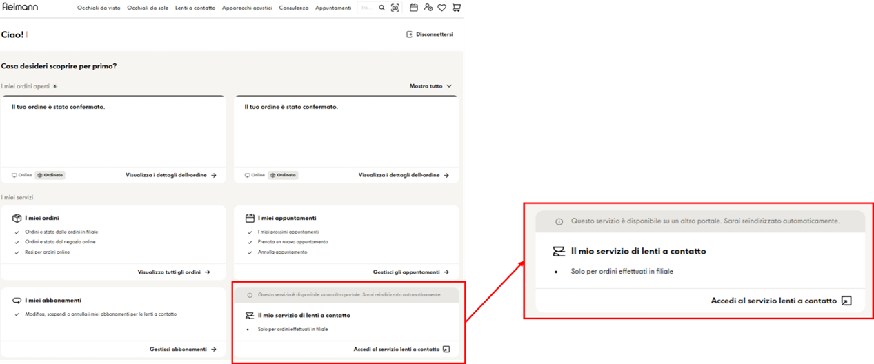 L'account cliente del servizio lenti a contatto Fielmann è già collegato al negozio online. Puoi semplicemente accedere con il tuo indirizzo e-mail e la password esistenti.